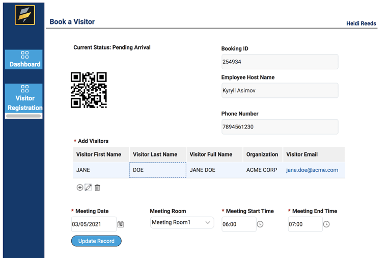 ทำให้กระบวนการอัตโนมัติสำหรับผู้เยี่ยมชมที่ได้รับอนุญาตก่อนเข้าอาคาร แอปนี้ช่วยให้แน่ใจว่าผู้เยี่ยมชมทุกคนได้รับการอนุมัติและช่วยให้องค์กรติดตามผู้เยี่ยมชม ซึ่งมีประโยชน์อย่างยิ่งเมื่อคุณไม่มีคนนั่งอยู่ที่แผนกต้อนรับ พนักงานที่ลงทะเบียนสามารถเข้าถึงแบบฟอร์มการลงทะเบียนผู้เข้าชมเพื่อสร้างการเรียกประชุมใหม่และจองห้องประชุม ผู้เข้าชมจะได้รับรหัส QR ง่ายๆ เจ้าหน้าที่รักษาความปลอดภัยสามารถเข้าถึงการประชุมที่กำลังจะมีขึ้นทั้งหมดและอนุญาตให้ผู้มาเยี่ยมชมเข้าใช้ด้วยรหัสที่ไม่ซ้ำกัน