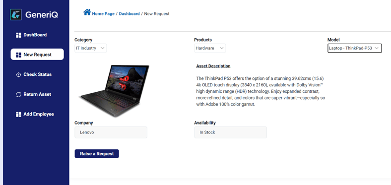 โซลูชันนี้ช่วยให้บริษัทสามารถจัดการการติดตามสินค้าคงคลังของสินทรัพย์ใดๆ ที่อาจจัดสรรให้กับพนักงานหรือลูกค้า รวมถึงกระบวนการสองขั้นตอนที่อนุญาตให้พนักงานร้องขอและรับสินทรัพย์ที่ได้รับอนุมัติสำหรับการแจกจ่ายจากผู้อนุมัติหรือผู้จัดการที่ได้รับมอบหมาย