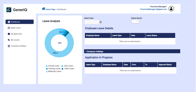สิ่งนี้ทำให้ง่ายต่อการจัดการคำขอลางานของพนักงาน ให้ความสามารถในการปรับใช้ระบบตามเวิร์กโฟลว์สำหรับการจัดการการลางาน ซึ่งรวมถึงระดับการอนุมัติหลายระดับ แอปนี้ใช้ JQPlot สำหรับการสร้างแผนภูมิแบบไดนามิกของยอดคงเหลือการลางาน และสร้างและส่งคำเชิญ iCal ไปยังพนักงานเมื่อคำขอได้รับการอนุมัติให้บล็อกหรือ ปฏิทินของเธอ