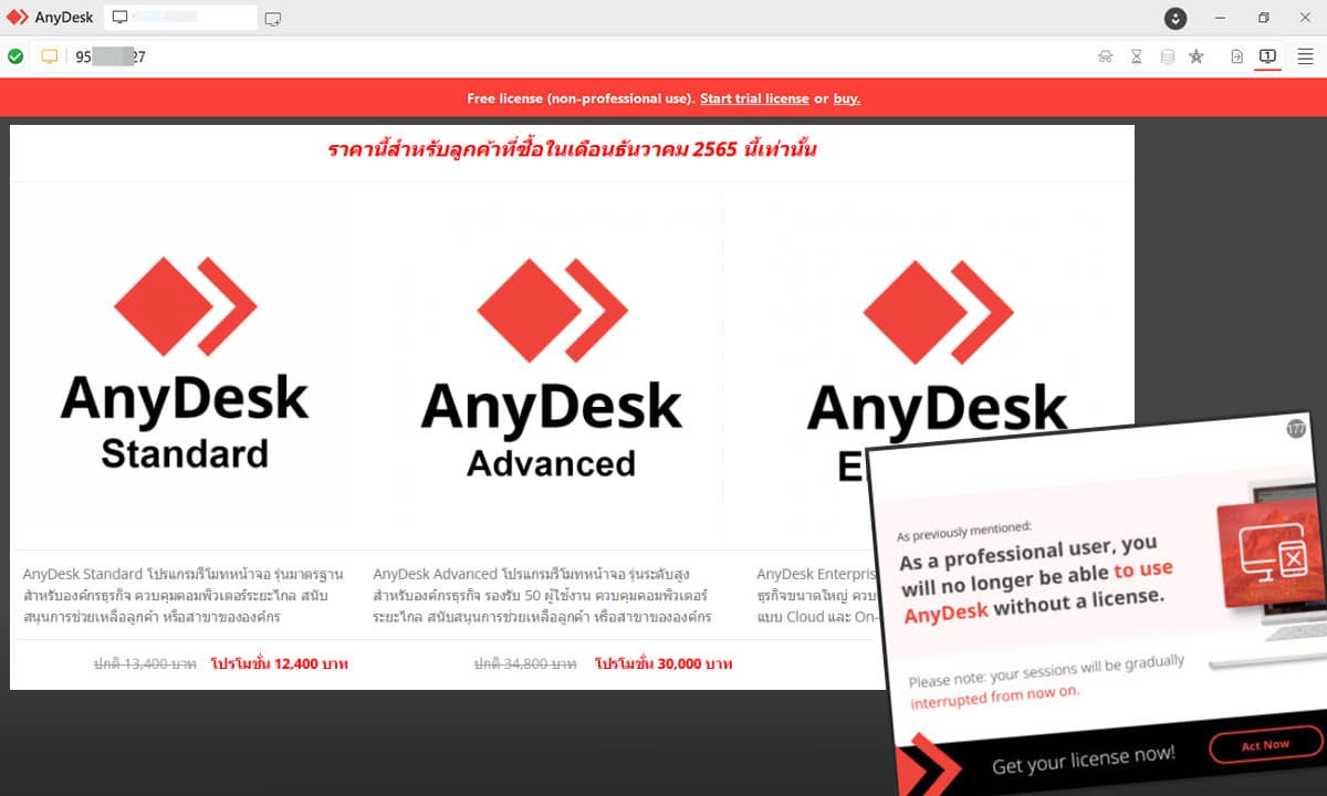 คุณจะไม่สามารถใช้ AnyDesk ต่อเนื่องได้อีกต่อไปหากไม่มีใบอนุญาต! ข่าวสาร ธันวาคม 14, 2022 ธันวาคม 15, 2022 wpadmin ภายในสิ้นปีนี้อีกไม่กี่วัน Any อ่านต่อ